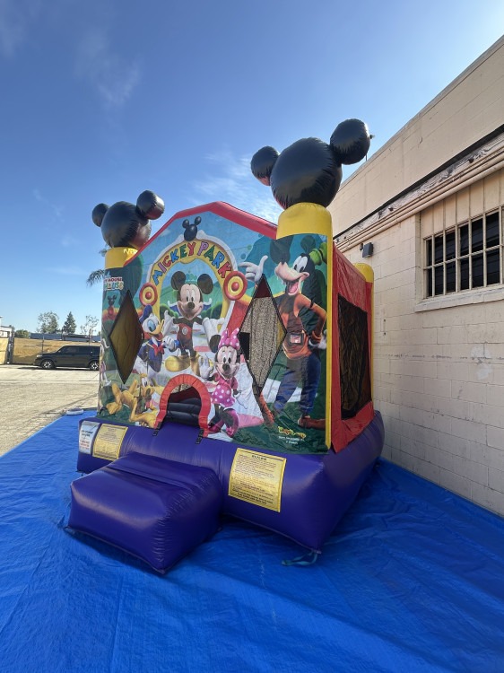 Bring classic cartoon charm to your event with this Micky Mouse-themed inflatable. Sized roughly 11 feet long by 11 feet wide with a 12-foot peak, it offers a roomy jumping area for kids to play, bounce, and laugh safely. The colorful, family-friendly design makes it a great centerpiece for birthday parties, school events, or community festivals.